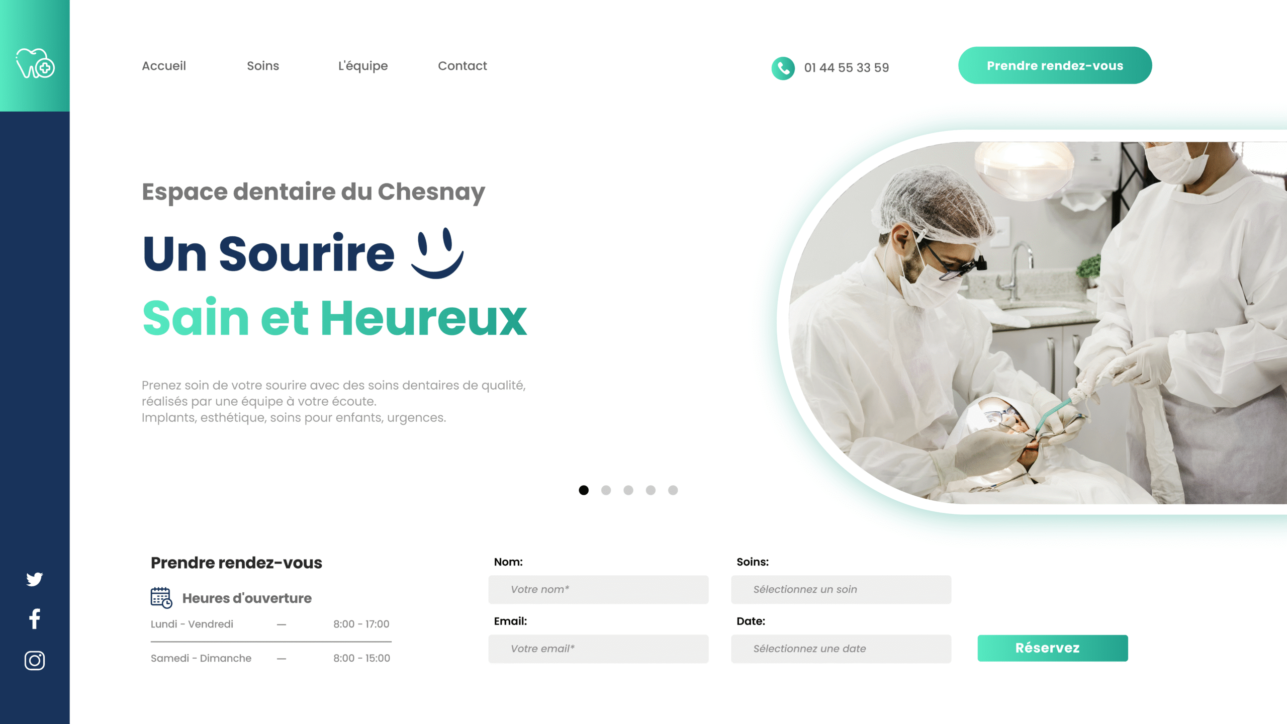 Site vitrine clé-en-main pour un cabinet dentaire, avec un design moderne et rassurant, système de prise de rendez-vous intégré, pages optimisées pour présenter les soins, l’équipe et renforcer la confiance des patients.